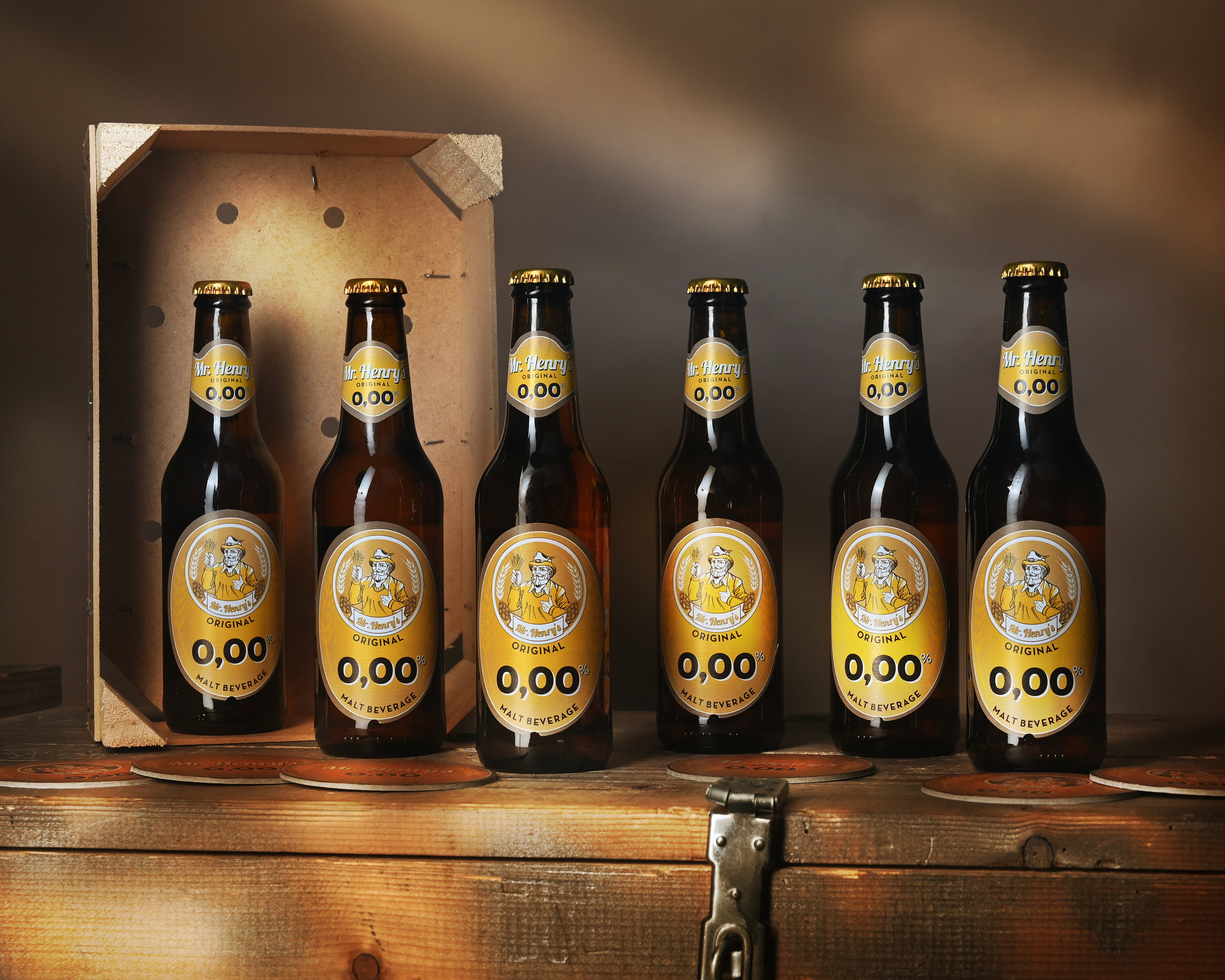 Mr. Henry's Original 0.00%. Full of flavor, brewed with pure spring water and carefully selected malts and hops.
